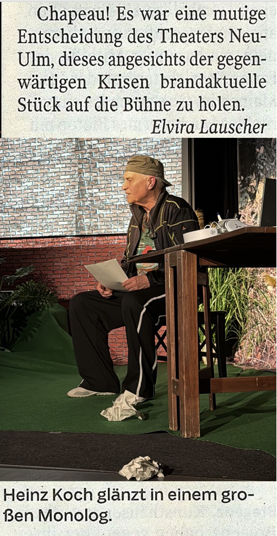 "Heinz Koch glänzt in einem großen Momolog", sagte die Presse.