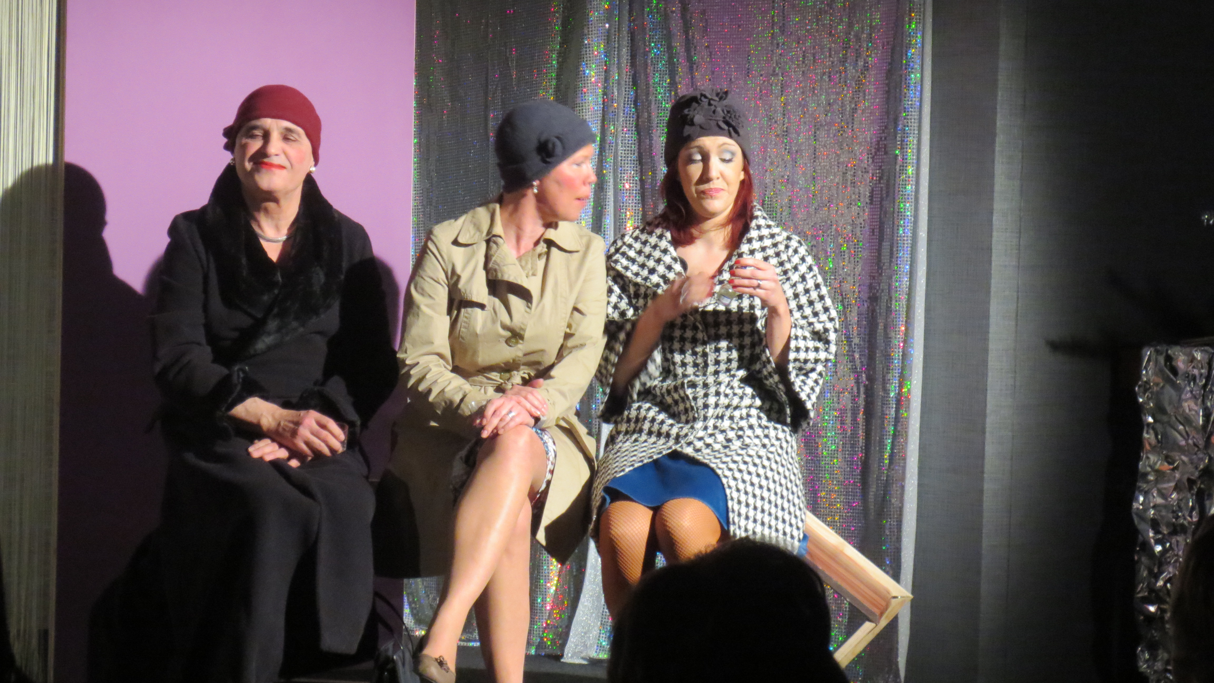 Und wenn Matta von Markwort-Wattenscheid (Heinz Koch, auf obigem Bild ganz links sowie unten) ihr absolut schräges Liebeslied singt; und wenn Claudia Riese (Mitte) zwar nicht singt, aber gleich zu Beginn als knitze Schwäbin Luise Häberle mit Scharfzüngigem brilliert und auch im weiteren Verlauf dafür sorgt, dass kein Auge trocken bleibt. Und wenn Clarissa Hopfensitz (rechts) singt: "Warum hab ich so wenig Text?"