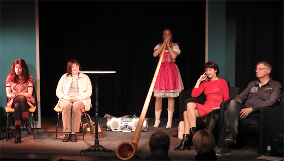 Aufnahme von der Uraufführung am 10. Juli 2016, von links: Heinz Koch, Fee Katrin Kanzler, Joerg Neugebauer, Corina Wagner, Marei Richter, Bernd Rindle.