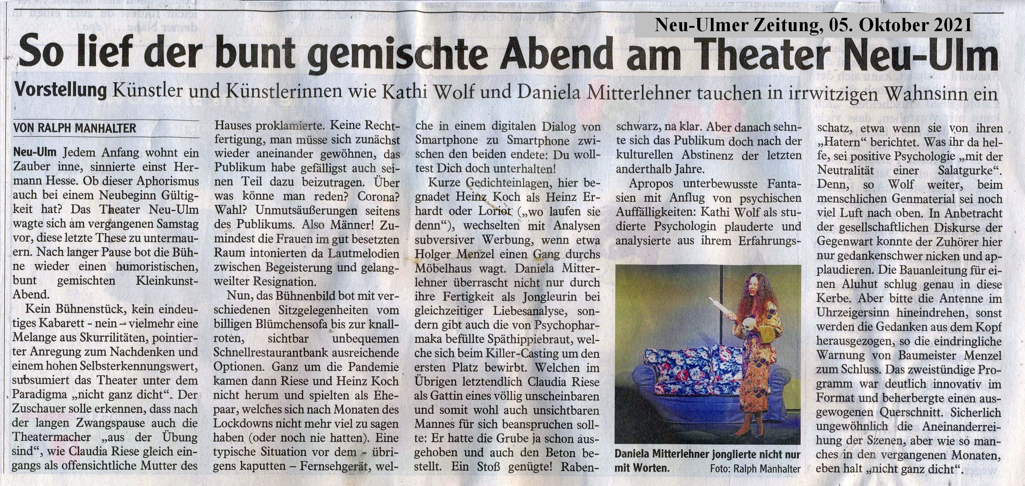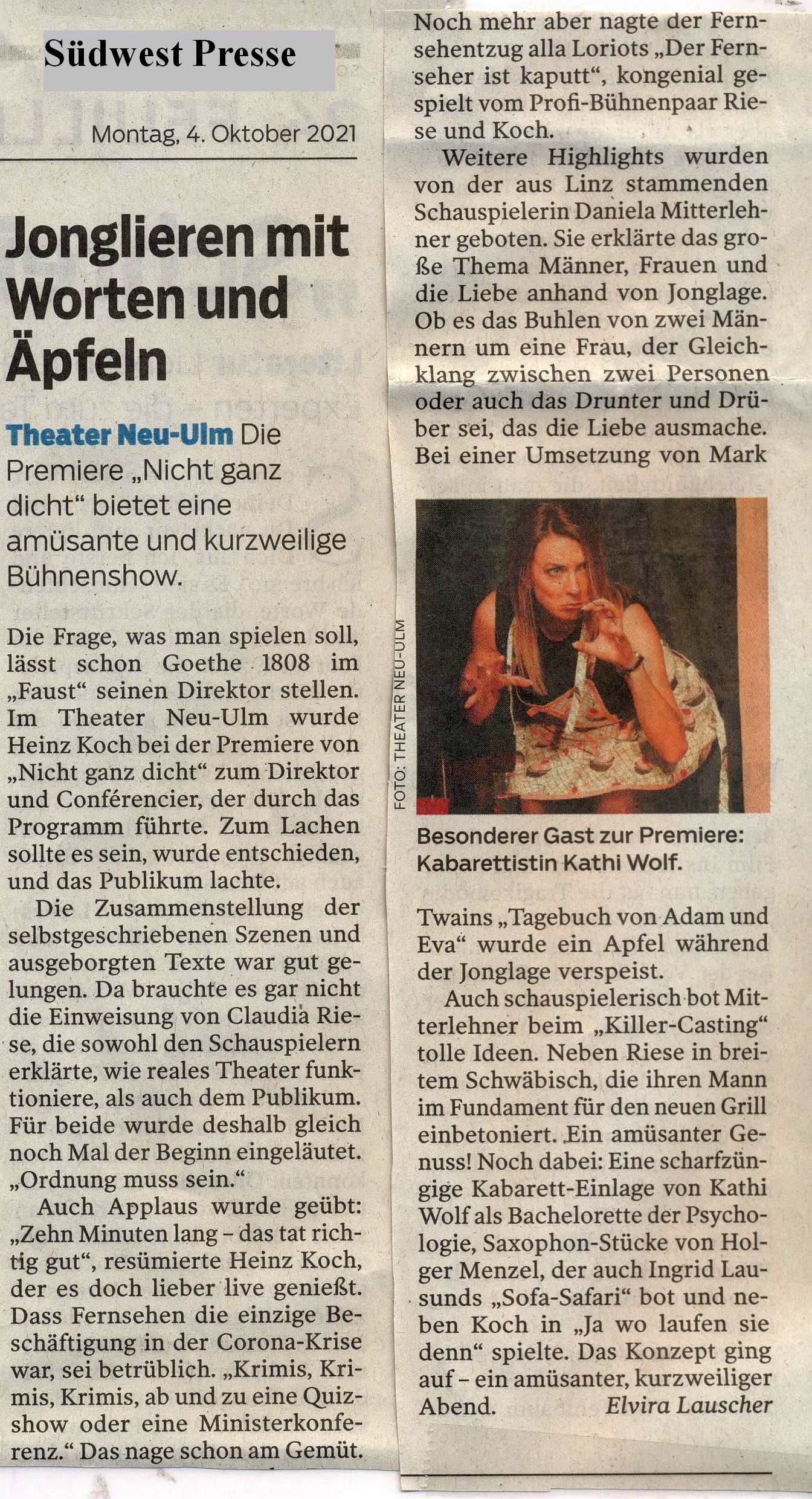 Wir wollen Eure Lieblings-Bühne sein - "nicht ganz dicht" - vom Autoren-Duo "Riese & Ko"