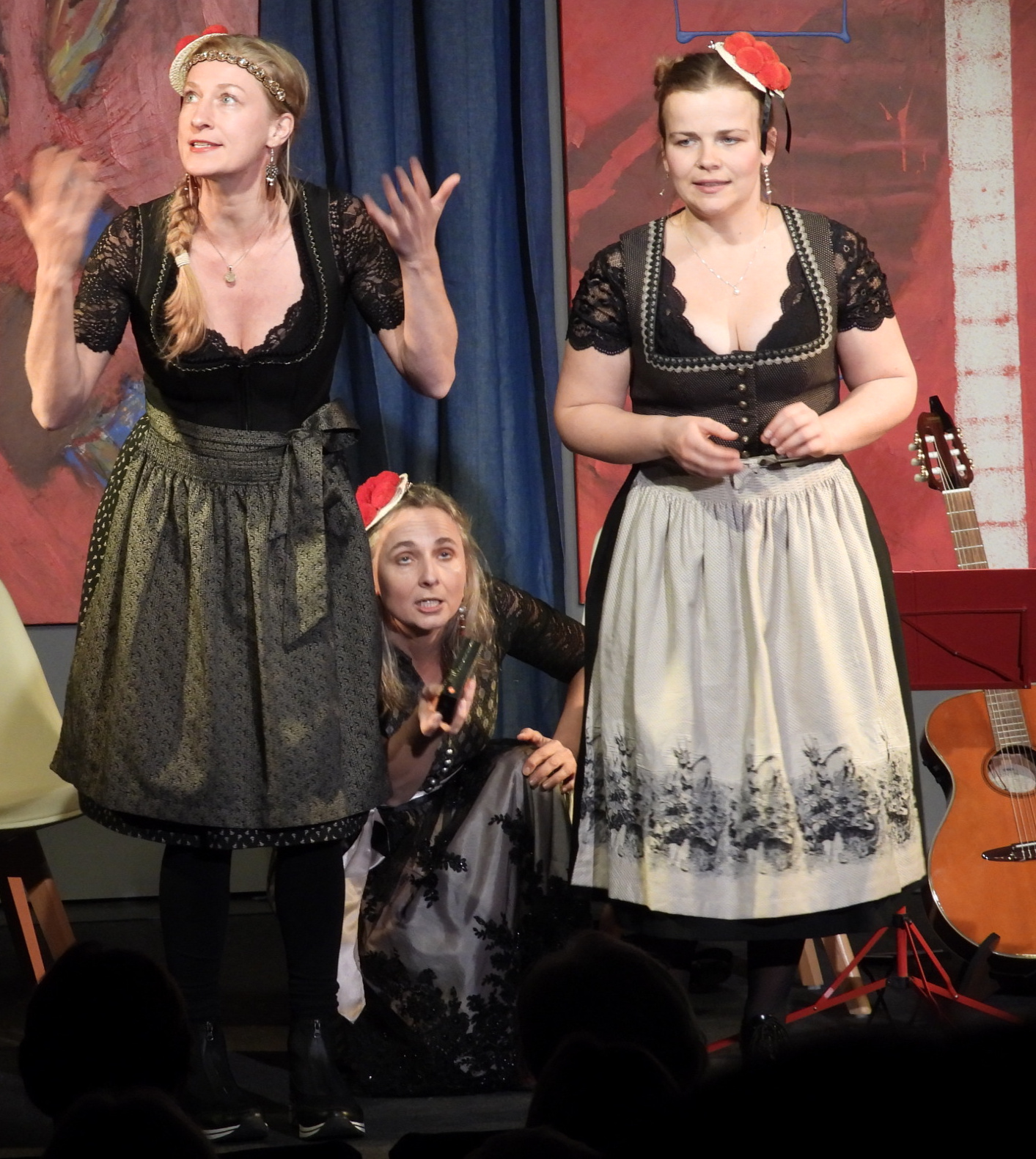 Die berühmten Töchter Liebelsberg sollten eigentlich heute hier im Theater Neu-Ulm auftreten. Doch die Stars genehmigen sich (wieder mal) 'ne Auszeit, chillen und überlassen den Auftritt ihren Doubles.Das Publikum soll und wird aber keinesfalls enttäuscht werden! Im Gegenteil: Im Gegenteil: Die drei "Notstopfen" sind inzwischen besser als das eher eingefahrene Original-Trio. "Susan" (Birgit Heintel), "Ann-Kathrin" (Leonore Schöttle) und "Lilly" (Jeanine Amacher), sind nämlich mittlerweile äußerst geübt darin, als "Töchter Liebelsberg" zu glänzen.
