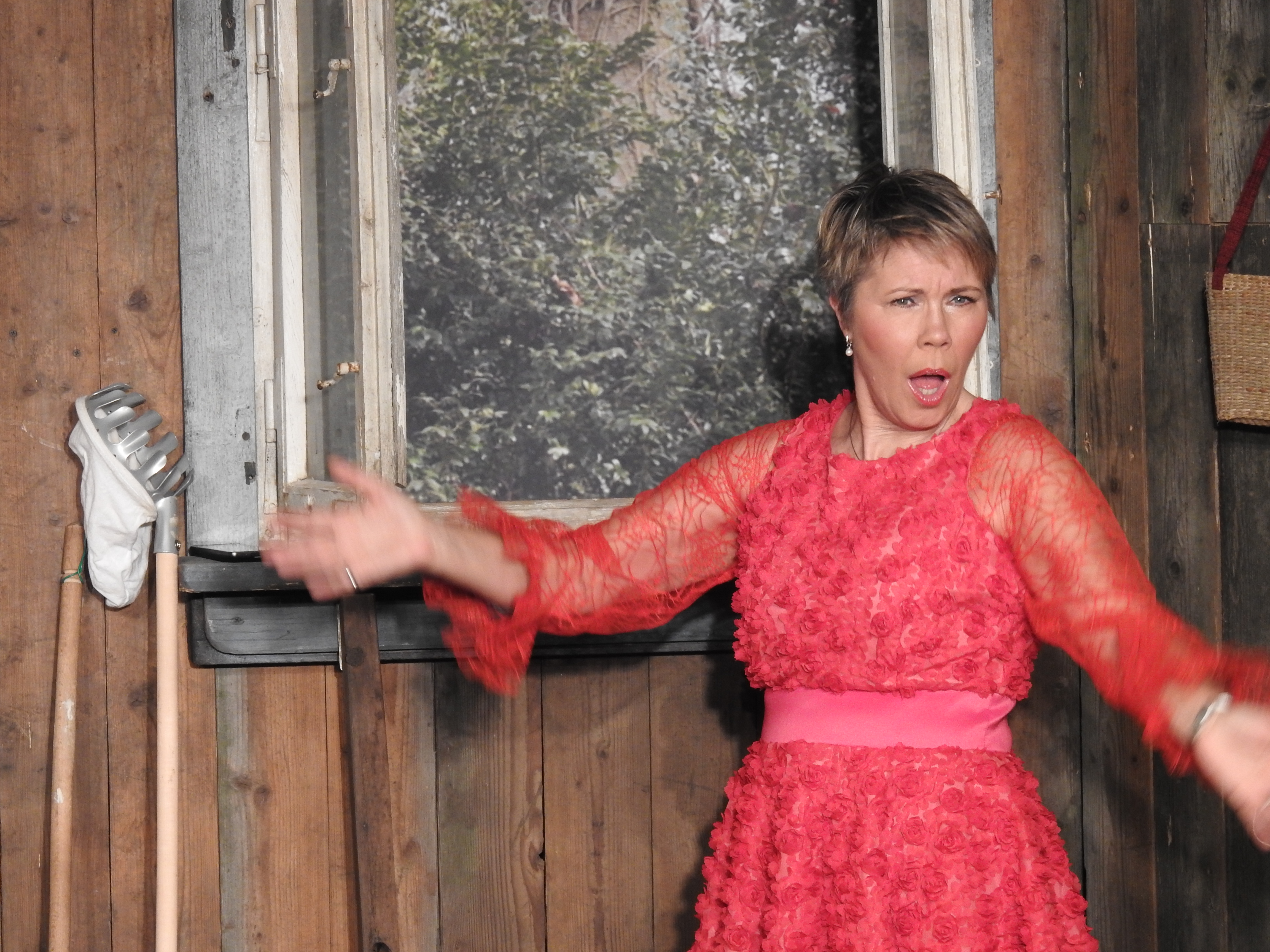 Da oben im Baumhaus, ihrem Traumhaus. Andererseits ist sie so aufgebracht, dass sie zu allem fähig ist, ergeht sich in den wildesten (Rosenkriegs-)Phantasien, reagiert sich ab, wobei die Dagmar Lutz / Steffi Engebrecht die wertvollen Tipps vom Stapel lässt, welche diese Bühnen-Figur nach dem Willen des Autors für Mann und Frau und Schwiegermütter (!) parat hat, Antworten unter anderem auf so weltbewegende Fragen wie: