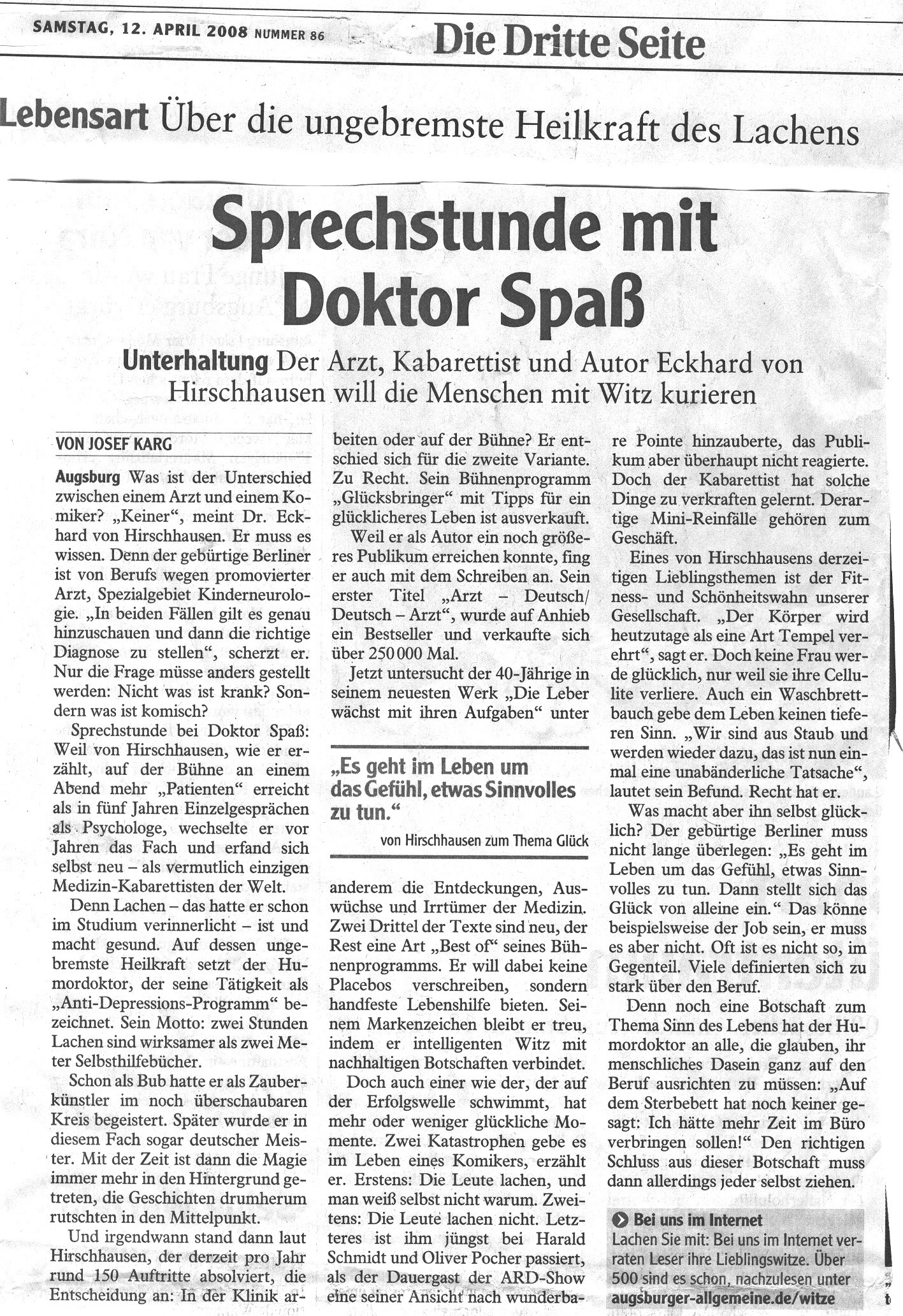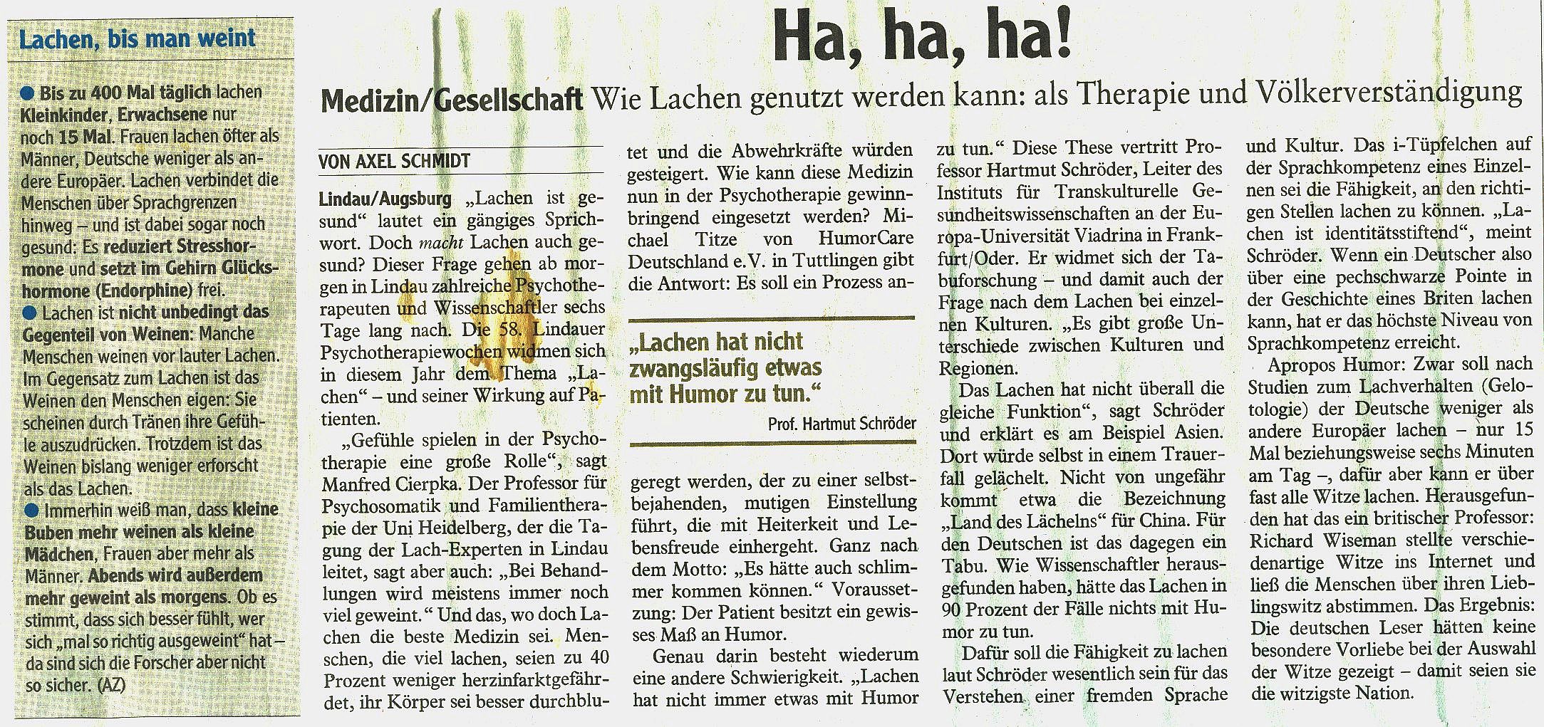 Da findet man alles von Gelotologie bis zum Humor-Kongress. Da sieht man, dass die Idee "Theater auf Krankenschein" total up to date ist. Aber bis das mal jemand kapiert...